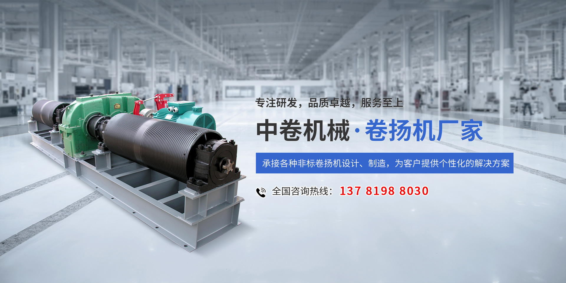公司主要產品:JM(慢速)、JK(快速),JMM(摩擦),JWM(蝸輪),JKL(溜放)等系列卷揚機,并承接各種非標卷揚機設計、制造。